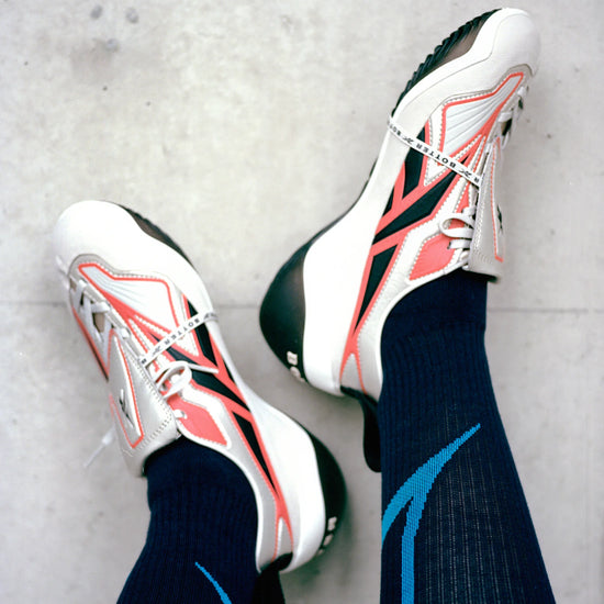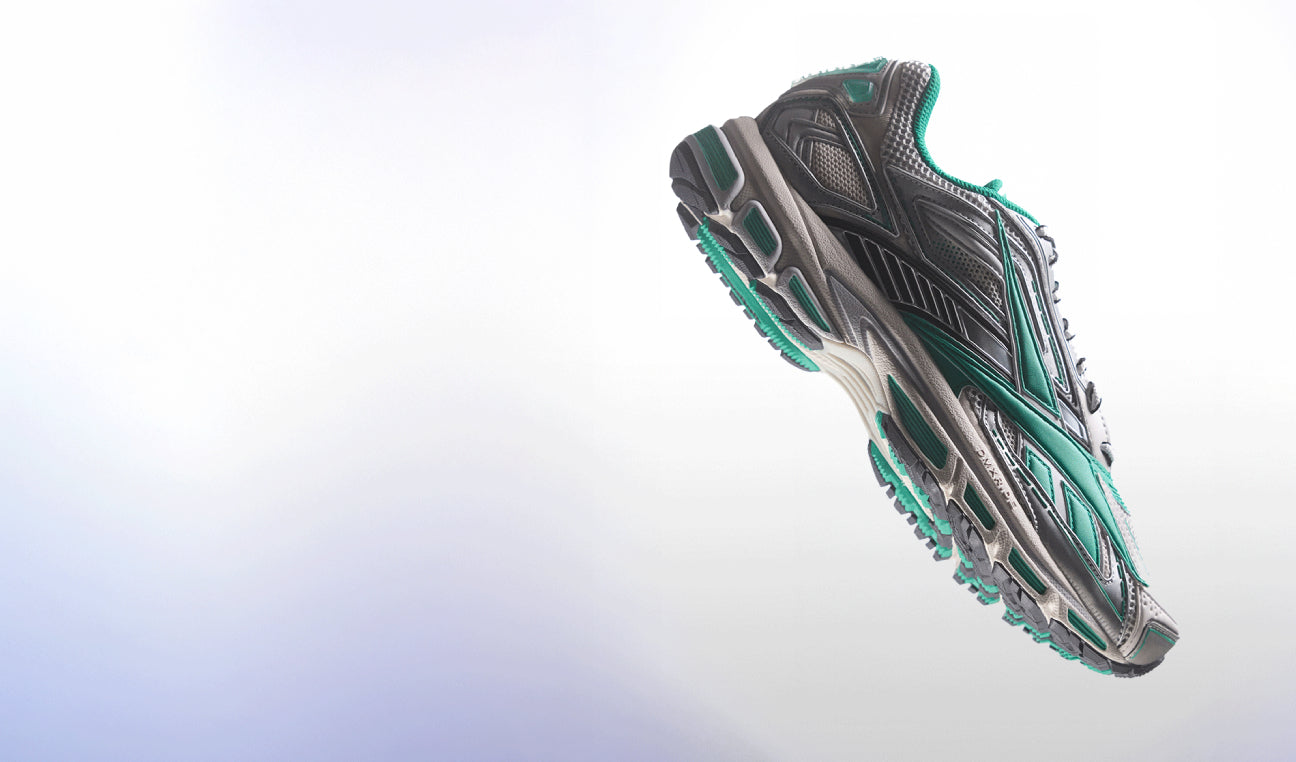 Running-inspired silhouette with futuristic layers and bold design.